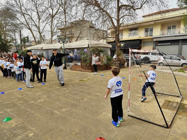 Παράλληλα, στον χώρο της πλατείας στήθηκε γήπεδο Handball, όπου μαθητές και επισκέπτες γνώρισαν το άθλημα, σχημάτισαν ομάδες, συμμετείχαν σε αγώνες, έλαβαν αναμνηστικά μετάλλια και χάρισαν χαμόγελα σε μικρούς και μεγάλους.